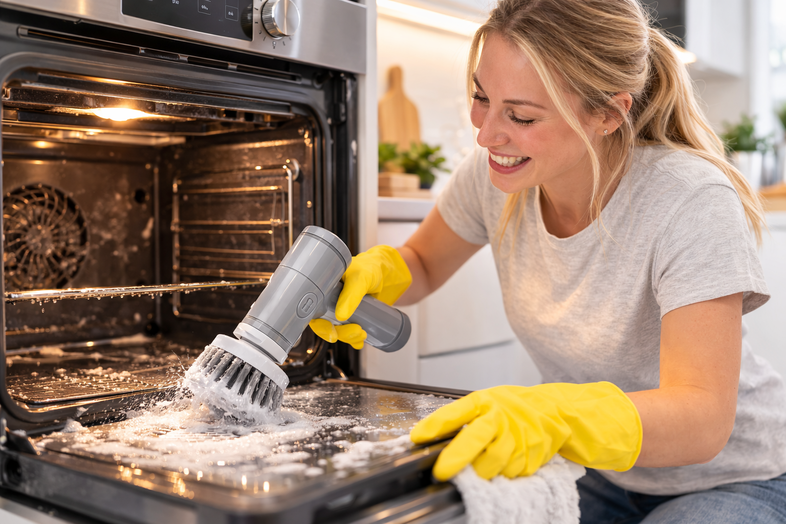 Avec la brosse électrique 5-en-1, un simple geste suffit pour retrouver des surfaces propres et brillantes.